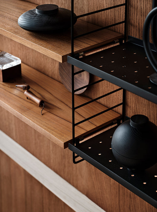 Una estantería de diseño escandinavo que solucionará todos tus problemas de almacenamiento. El sistema le permite construir la estantería con la que siempre ha soñado. Cree una estantería única y personal combinando estantes metálicos y de madera. O diviértase jugando con colores y accesorios. Las posibilidades son infinitas. El sistema de estanterías String® es muy conocido por sus característicos paneles de rejilla metálica, diseñados en 1949 por el arquitecto Nisse Strinning con la colaboración de Kajsa Strinning.