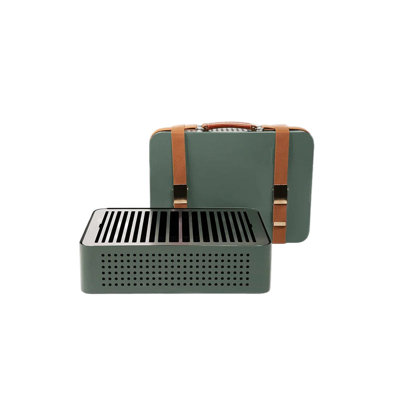 La barbacoa portátil Mon Oncle de RS Barcelona reinterpreta el clásico gesto de cocinar al aire libre con una estética única y un diseño sorprendente. Cerrada, se presenta como un maletín vintage lleno de carácter; abierta, revela una barbacoa de sobremesa portátil pensada para acompañarte en la terraza, el balcón, el jardín o una escapada improvisada.