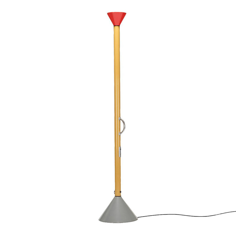 Diseñada en 1982 por Ettore Sottsass, la lámpara de pie Callimaco es una declaración visual de diseño radical. Con su combinación atrevida de colores primarios y formas geométricas, esta luminaria es una pieza escultórica que desafía las convenciones estéticas, reflejando el espíritu del movimiento Memphis liderado por su propio creador.