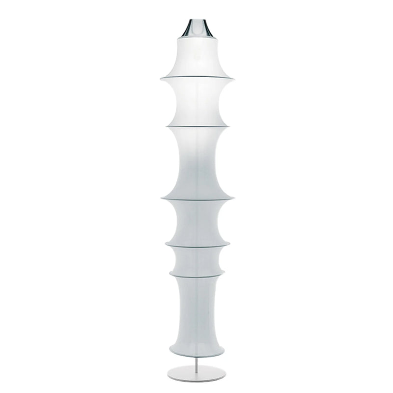 Diseñada en 1964 por Bruno Munari, la lámpara de pie Falkland es una declaración de diseño que desafía las convenciones formales con una estructura sorprendentemente simple y expresiva. Un tubo de malla elástica, tensado por anillos de aluminio, crea una silueta orgánica que se despliega con fluidez vertical. La luz se filtra suavemente a través del tejido, generando una atmósfera cálida y envolvente que transforma el espacio.