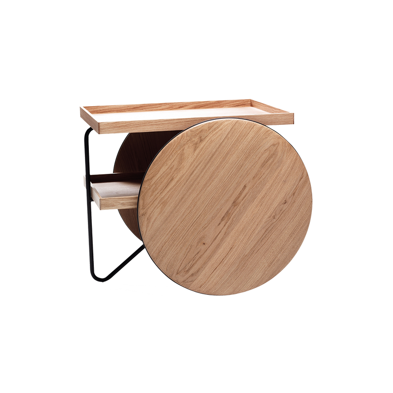 Chariot es una mesa auxiliar móvil formada por tres sencillos elementos unidos entre sí: ruedas, bandejas y estructura. Las ruedas, que en los carritos de bebidas o camareras, por lo general suelen ser pequeñas, se han llevado al extremo al aumentar su tamaño, convirtiéndose en el elemento icónico de este reconocido diseño. Un perfil de goma se inserta en las ruedas para facilitar el movimiento. Las dos bandejas actúan como compartimentos de almacenaje y la estructura metálica también es un asa: levantando ligeramente el carro, éste se puede mover.