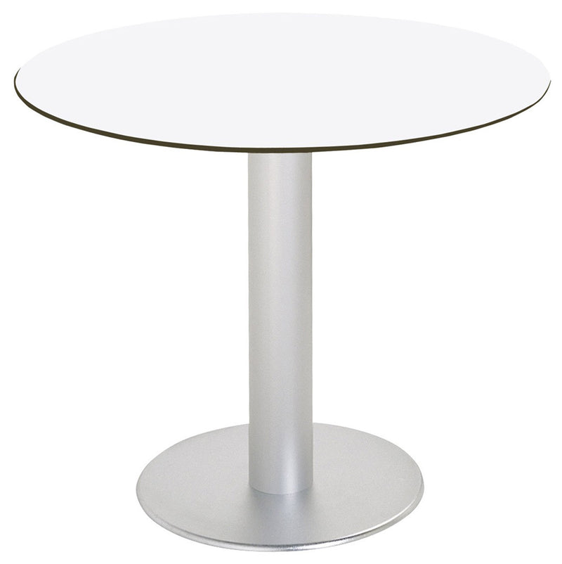 Zero es una mesa redonda de pie central con un diseño limpio y esencial. Las numerosas combinaciones posibles entre estructuras y tapas hacen que la mesa Zero pueda encajar en cualquier ambiente. Su pie central permite el máximo aprovechamiento del espacio alrededor. Esta versión apta para exterior está realizada con pie de acero inoxidable y tapa de HPL.