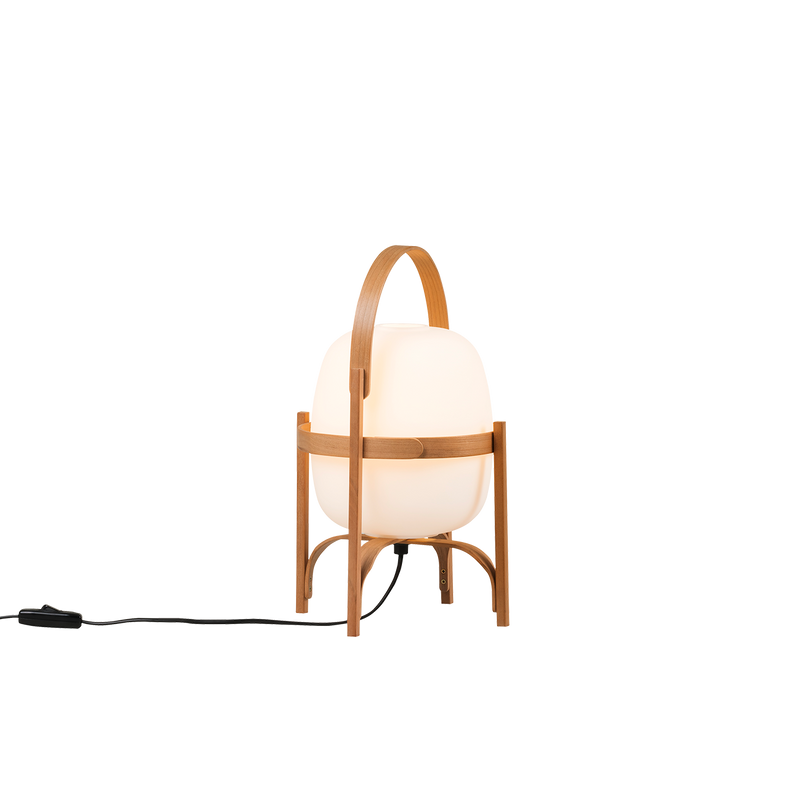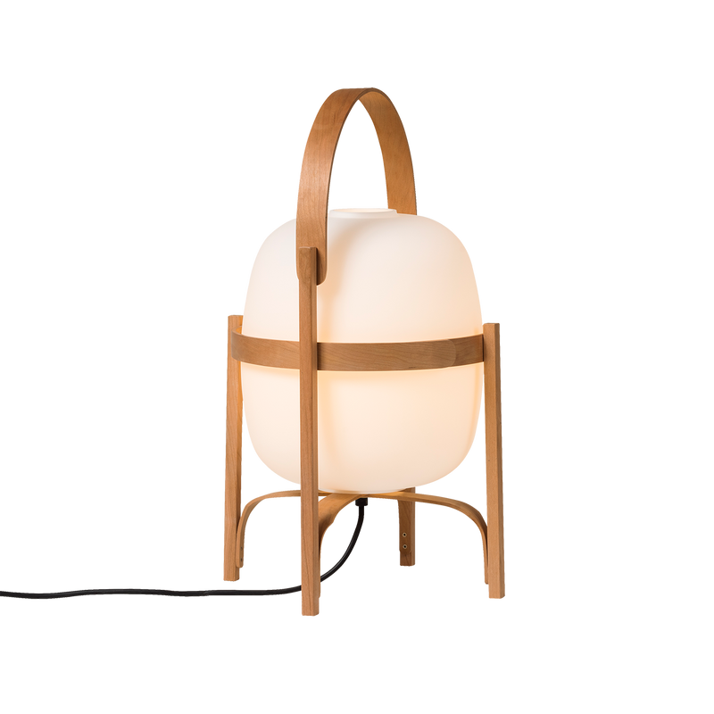 Basada en la tradicional linterna que ilumina las casas de la costa, las fincas campestres y las terrazas abiertas, la Cesta es una de las lámparas más icónicas creadas por Miguel Milá. Este objeto-lámpara encuentra su lugar indistintamente sobre una mesa o en el suelo, una luz que acompaña. Compuesta por una sutil estructura de cerezo que protege al globo de cristal opal, difusor de su luz.
