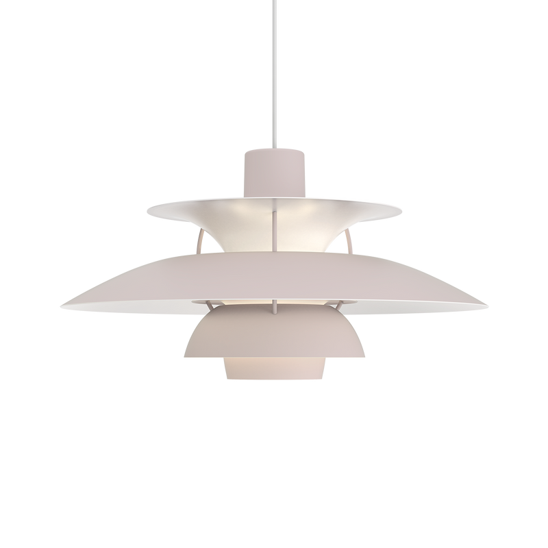 En 1958, Poul Henningsen diseñó la PH 5, en respuesta a los constantes cambios que los fabricantes iban introduciendo en el tamaño y la forma de las bombillas incandescentes, y la bautizó en base al diámetro de la pantalla principal de esta lámpara de suspensión: 50 centímetros. Fiel a su estilo polémico, cuando la lámpara se lanzó al mercado puso por escrito su crisis de fe para con los productores de bombillas incandescentes, de los que no esperaba ya que aprendiesen a mostrar sentido común o consideración hacia el cliente: “Me he rendido al destino y, con permiso de Louis Poulsen, he diseñado una luminaria PH que puede usarse con todo tipo de fuentes de luz, luces de Navidad y bombillas con filamentos metálicos de 100 W. Aunque, para su forma actual, ¡un tubo fluorescente sería demasiado pedir!” En aquel momento, nadie sabía que PH 5 se convertiría en un referente del legado de PH, y como tal sigue siendo un producto plenamente sin deslumbramiento, independientemente de cómo se instale o de la fuente de luz utilizada.