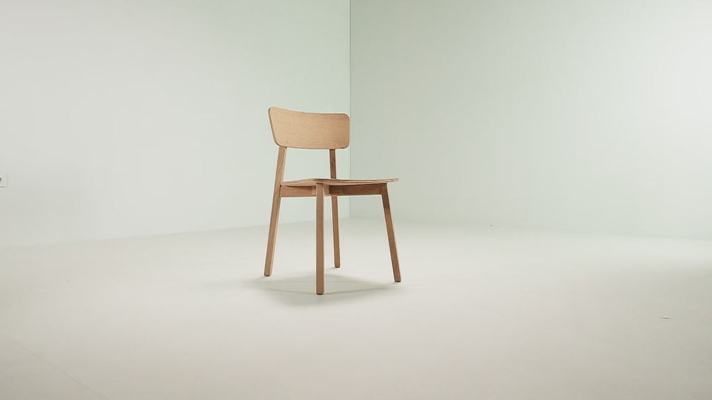 La silla Casale de Ethnicraft, diseñada por Studio Kaschkasch, destaca por un lenguaje formal depurado donde las líneas rectas se suavizan para dar lugar a una silueta ligera, equilibrada y elegante.