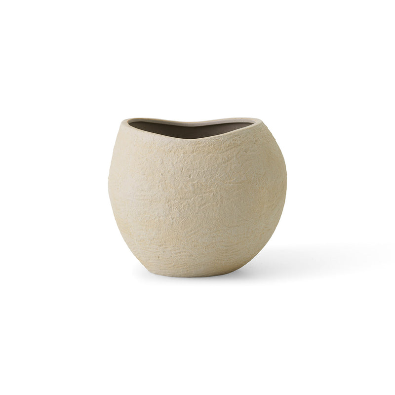 Plantas planters are handcrafted pieces made from matte ivory stoneware. They feature a unique design with curves and an irregular, grooved surface, adding a natural, textured touch to your decor. Each piece is unique and unrepeatable, and although designed for indoor use, they can also be used outdoors following the care instructions. Available in four sizes to suit your needs, Plantas planters enhance the beauty of your plants and add a special touch to your home.