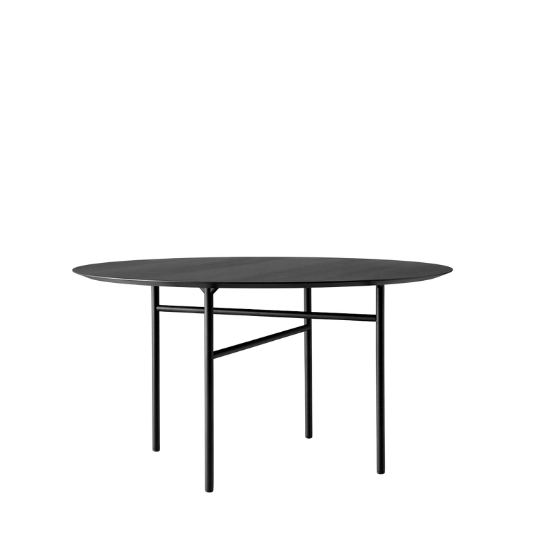 This lightweight table is available with a rectangular, oval, or round top, all supported by a minimalist base and legs. The Snaregade table can be placed in a dining room or meeting room, and is equally at home as an office or other space requiring ample seating. The top can be finished in natural veneer, solid oak, or a thin linoleum bonded to a painted top, revealing the natural beauty of the wood structure.