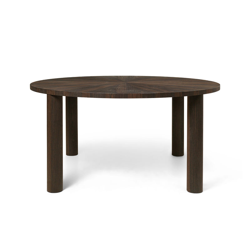 Inspired by brutalism, the Post dining table plays with shapes and scale to present a large, round dining table with plenty of room for dinners with friends and family. Crafted from FSC™-certified oak, the table has four sturdy cylindrical legs, while the large tabletop features an elegant and unique star-shaped oak veneer panel, achieved using a technique known as marquetry.