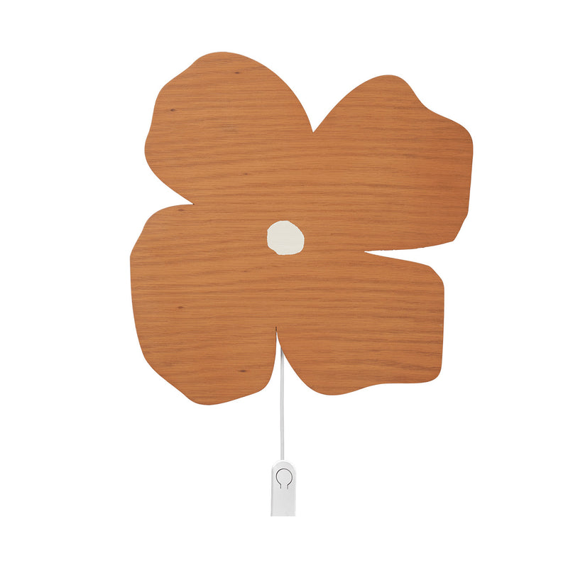 La Lámpara de pared Poesie de Ferm Living transforma cualquier habitación infantil en un refugio sereno y acogedor. Con su delicada silueta floral, elaborada en chapa de roble con certificación FSC™, proyecta una luz tenue y envolvente que invita al recogimiento y a los rituales nocturnos.