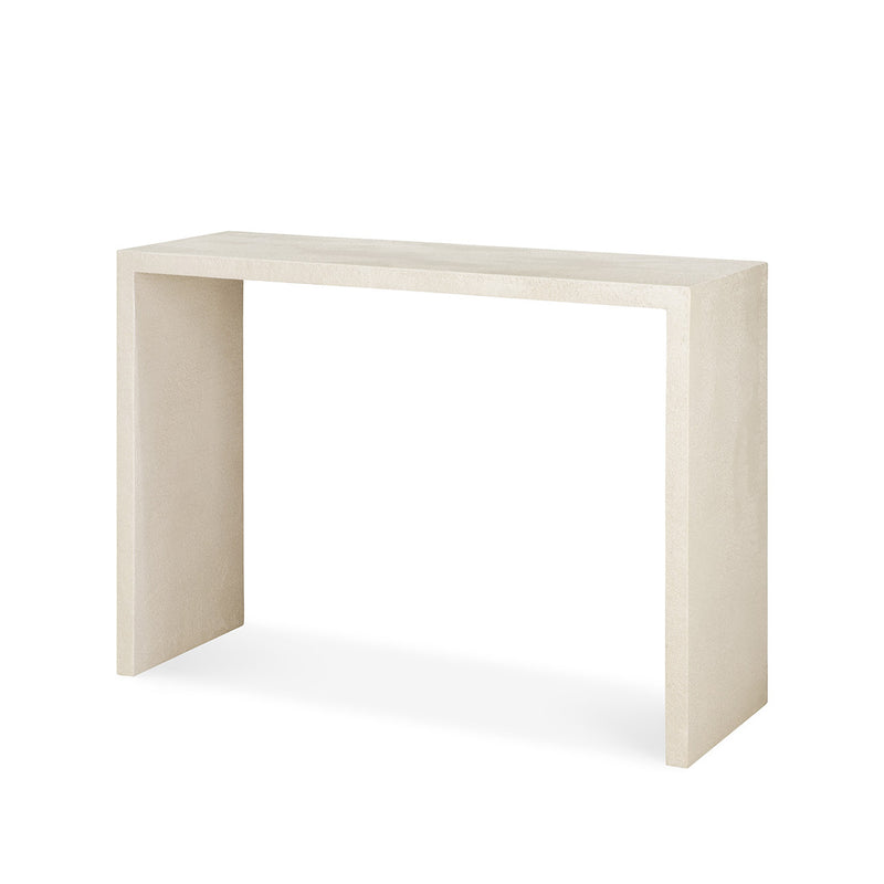 Cada pieza se trabaja en manos expertas, aplicando un acabado de piedra fina y terrosa de alto rendimiento que aporta profundidad visual, resistencia y una estética serena y contemporánea. El resultado es una consola equilibrada, con presencia escultórica pero líneas limpias, capaz de integrarse tanto en recibidores como en salones o espacios de transición.