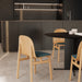 The collection has been conceived for both domestic spaces and contract spaces seeking formal and material quality. To provide more options, Isaac Piñeiro has dressed it in fabrics that complement the various wood finishes, including an upholstered version available upon request.