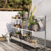 This floor-mounted combination section is designed for outdoor use. Featuring galvanized panels and shelves, the surface changes over time, leaving a beautiful patina. A combination of high- and low-edged shelves adds character to the unit.