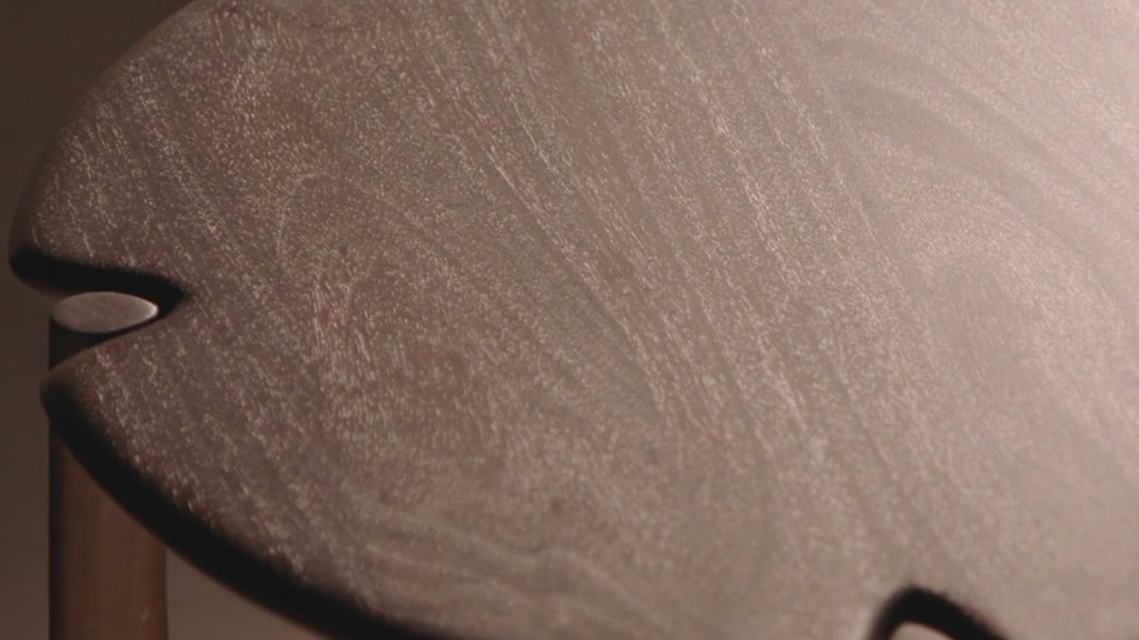 Su superficie presenta un acabado pulido y deliberadamente irregular, donde emergen formas sutiles que aportan profundidad visual y una estética elegante y serena. Cada mesa auxiliar PI se termina a mano, garantizando que no existan dos piezas iguales y que cada una mantenga su identidad propia.