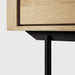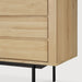Fabricado en roble macizo y elevado sobre patas de metal negro, este aparador adquiere una presencia más ligera y contemporánea. La base metálica no solo aporta contraste visual, sino que eleva la pieza, aportando dinamismo y facilitando su integración en espacios donde se busca mayor ligereza visual sin renunciar a la capacidad de almacenaje.