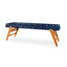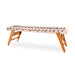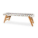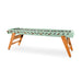 Estructura de acero con cataforesis y pintura poliéster microtexturada, patas de madera de iroko, campo de HPL, jugadores de aluminio fundido y mangos de madera.