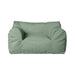 Su funda de algodón orgánico, disponible en tonos suaves como Off White y Tea Green, incluye un bolsillo lateral con tres compartimentos para guardar libros, juguetes o pequeños tesoros. Además, la funda es extraíble y lavable, facilitando el mantenimiento y prolongando la vida útil del puf.