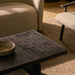 | Material | Madera de teca teñida de color marrón oscuro con acabado de barniz y tapizado en Eco-tela color Warm Ash con espuma de alta densidad. |